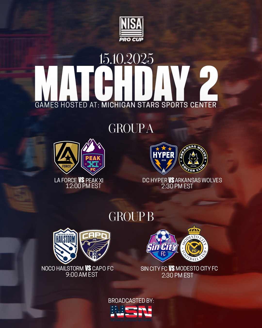Drawn with perhaps the toughest first two matchups of the NISA Pro Cup, Arkansas Wolves SC will be playing for its tournament lives after dropping its opener 4-2 to L.A. Force. Goalscorer George Almeida, who previously played professionally for Irvine Zeta FC and scored a goal in last year's NISA Championship Final, was a late add to the Wolves roster and has already proven himself a difference maker. DC Hyper controlled the tempo against Peak XI FC, firing in cross until an own goal gave them a breakthrough. Fabio Junior added a second and DC Hyper sits on top of Group B heading into the second matchday. Should the team with the heavy Brazilian influence be considered the favorite?